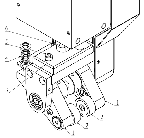 2.調(diào)較壓縮彈簧4力度,可以調(diào)節(jié)帶動輪2對布料壓緊力度。